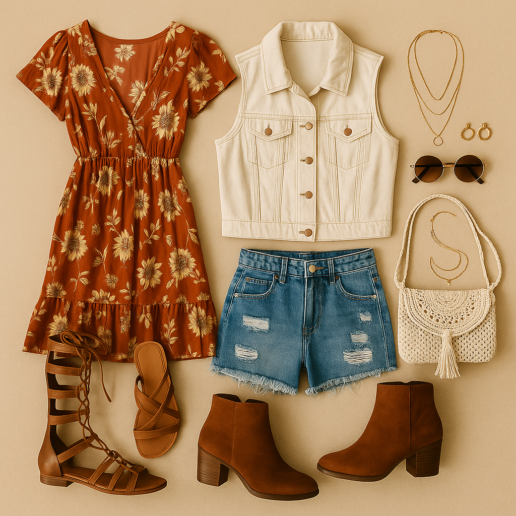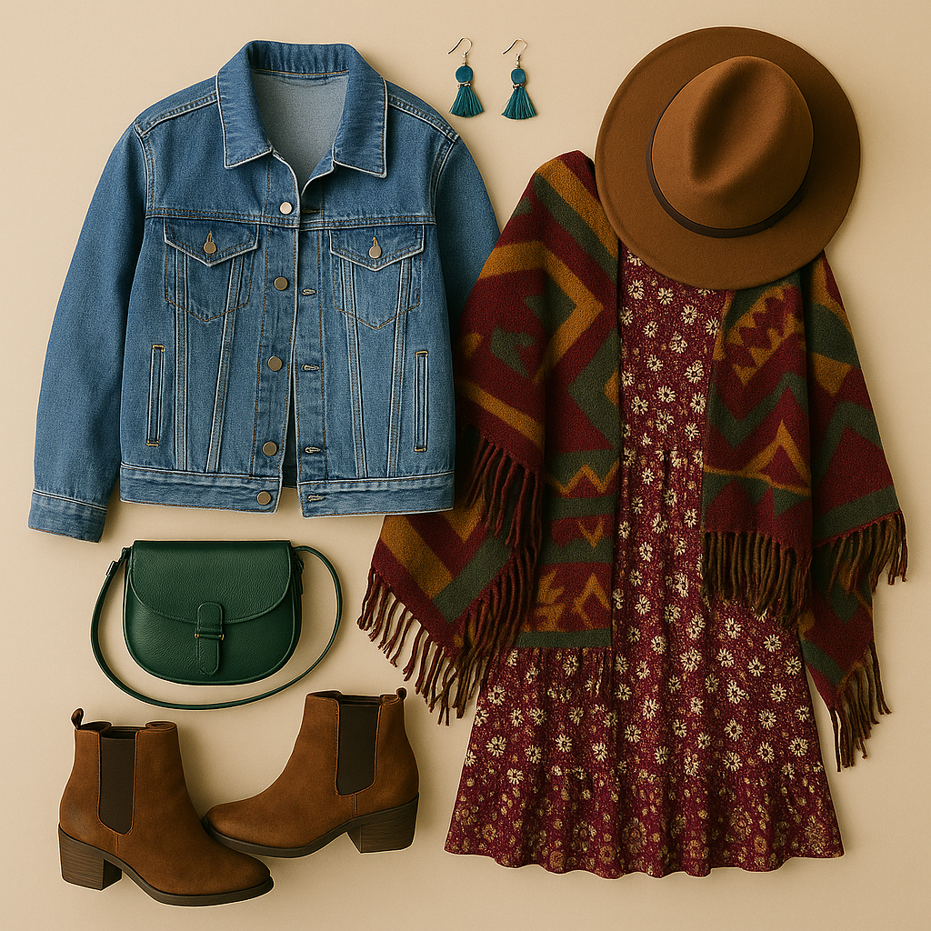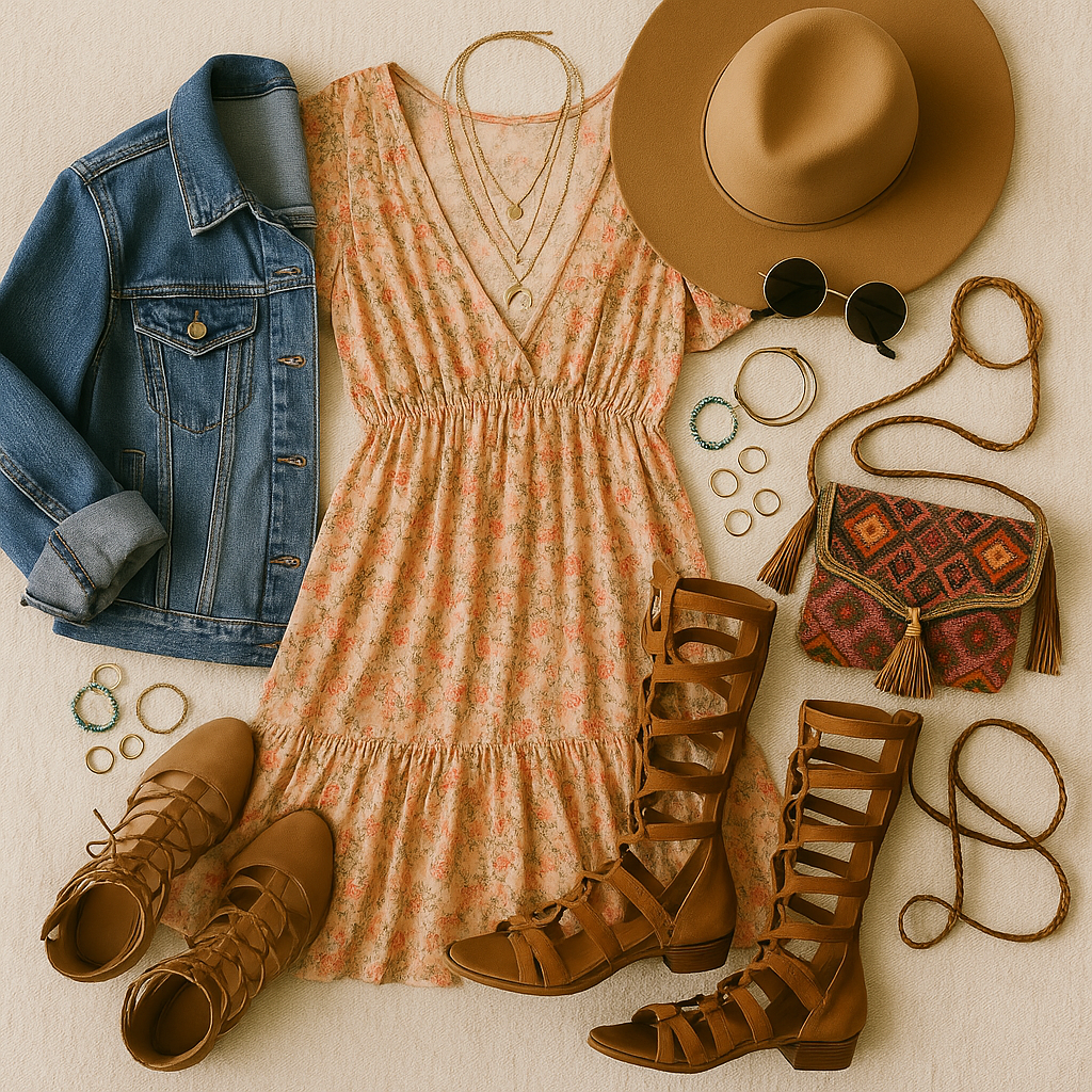 Бохо стилът (от „bohemian“) е вдъхновен от артистичния начин на живот, етно мотиви и винтидж естетика. Той е идеален за фестивали, защото съчетава удобни и ефирни материи, естествени цветове и интересни аксесоари, които правят визията уникална.