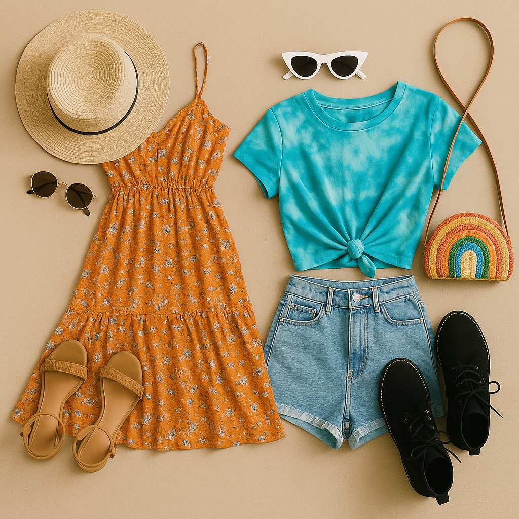 Фестивал с танци до късно → Избери комбинация – шорти и блуза в бохо дух, но със стабилни кецове.