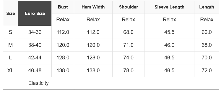 | Bust | Shoulders | Length | |