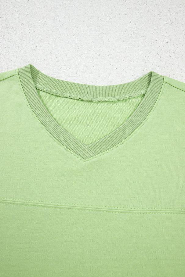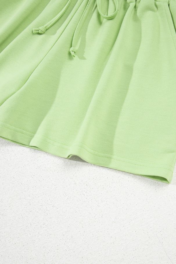 Meadow Mist Green Solid Loose V Neck Half Sleeve Tee and Shorts