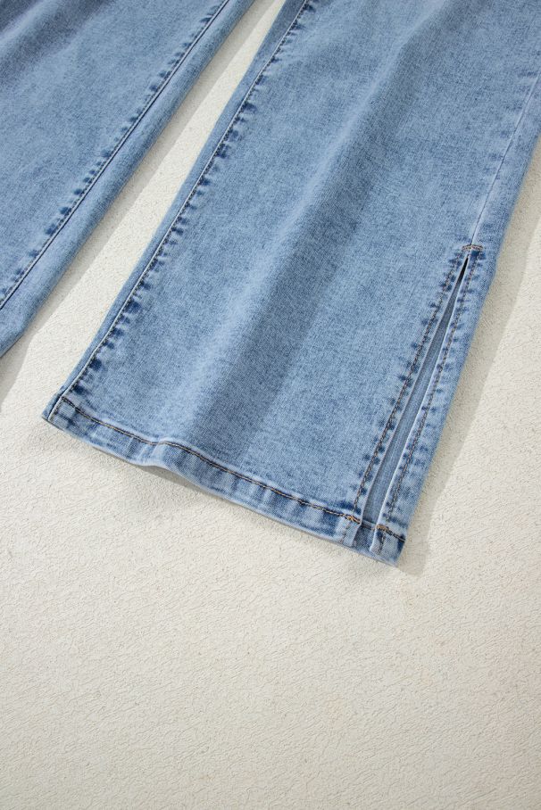 Women’s Blue High Waist Jeans with Drawstring and Slit Legs