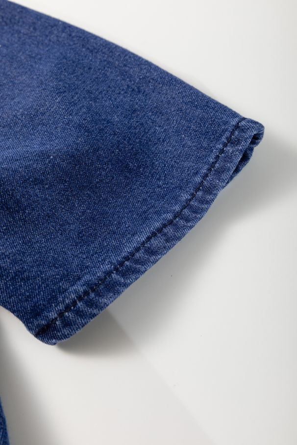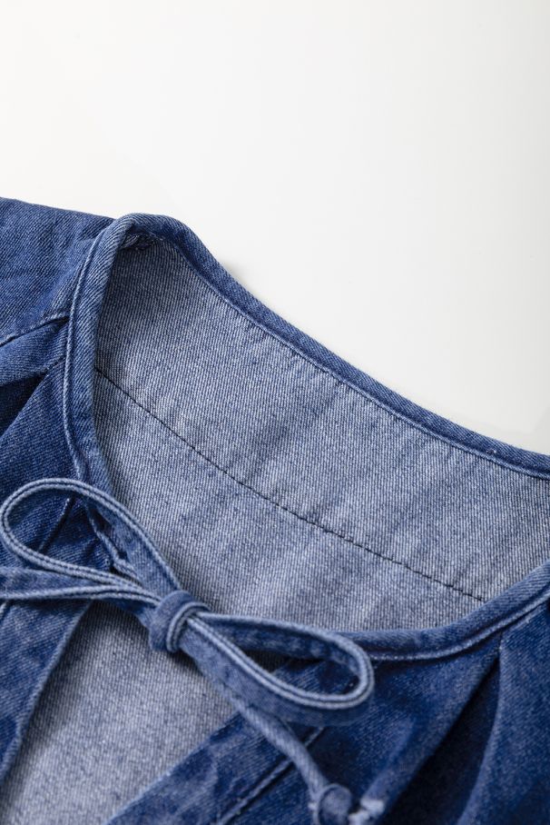 • Denim Puff Sleeve Drawstring High Waist Mini Dress exudes timeless style.