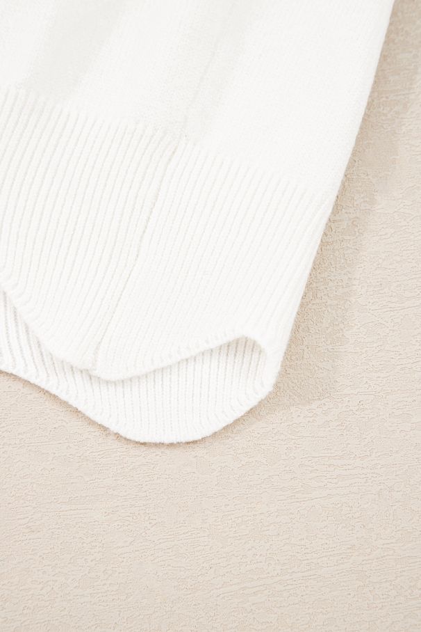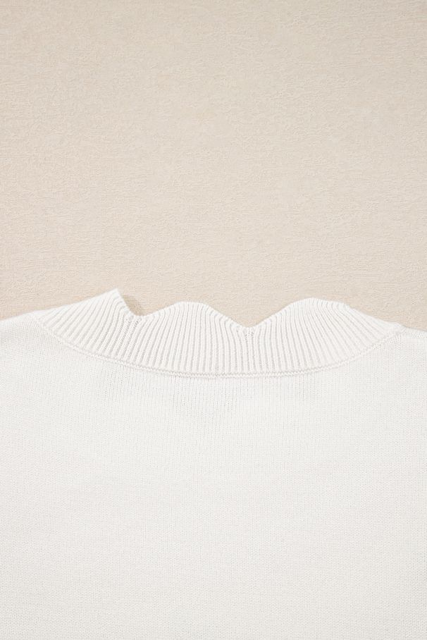 Women’s Short White Sweater with Floral Embroidery