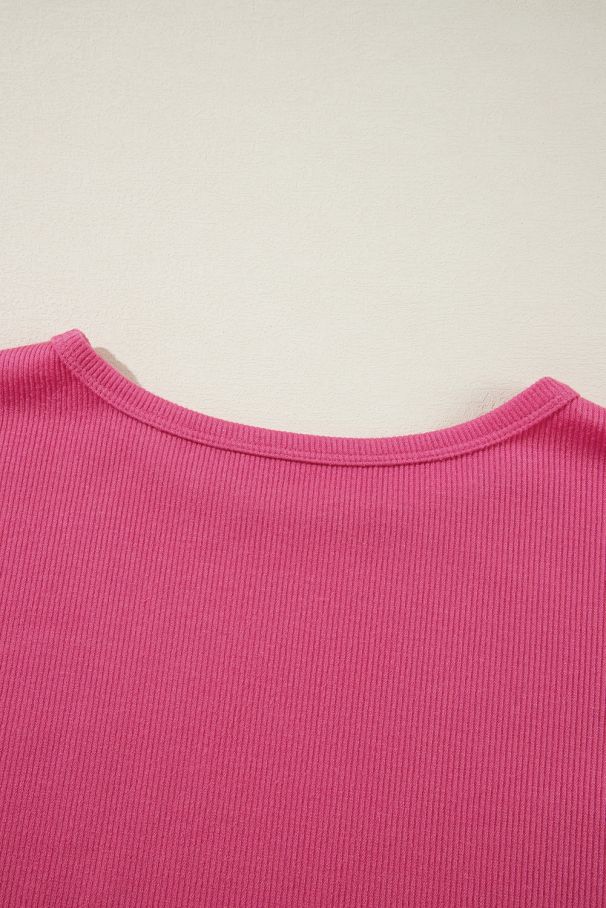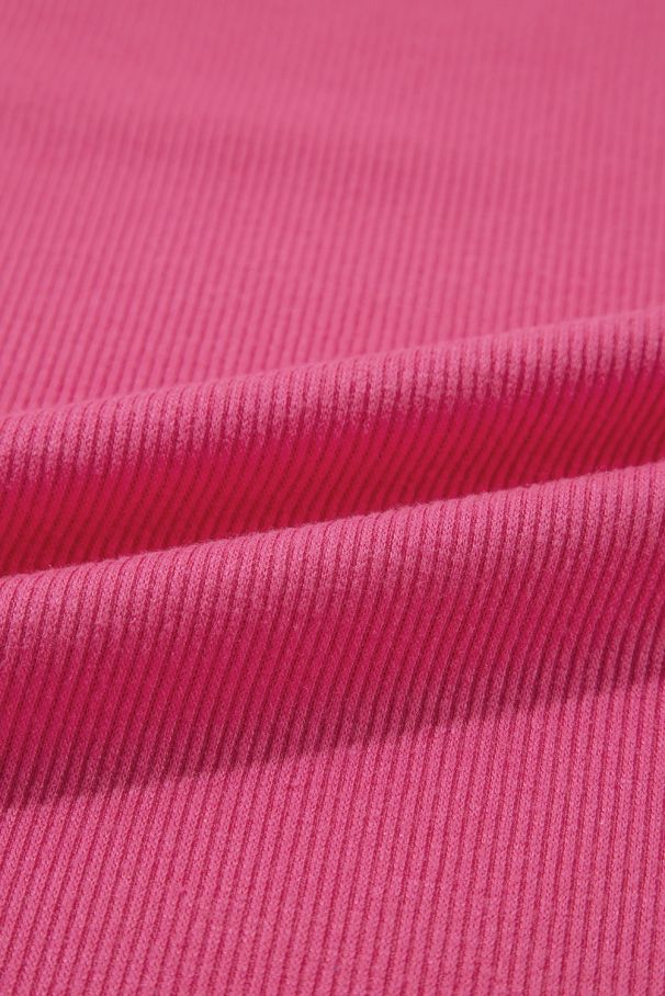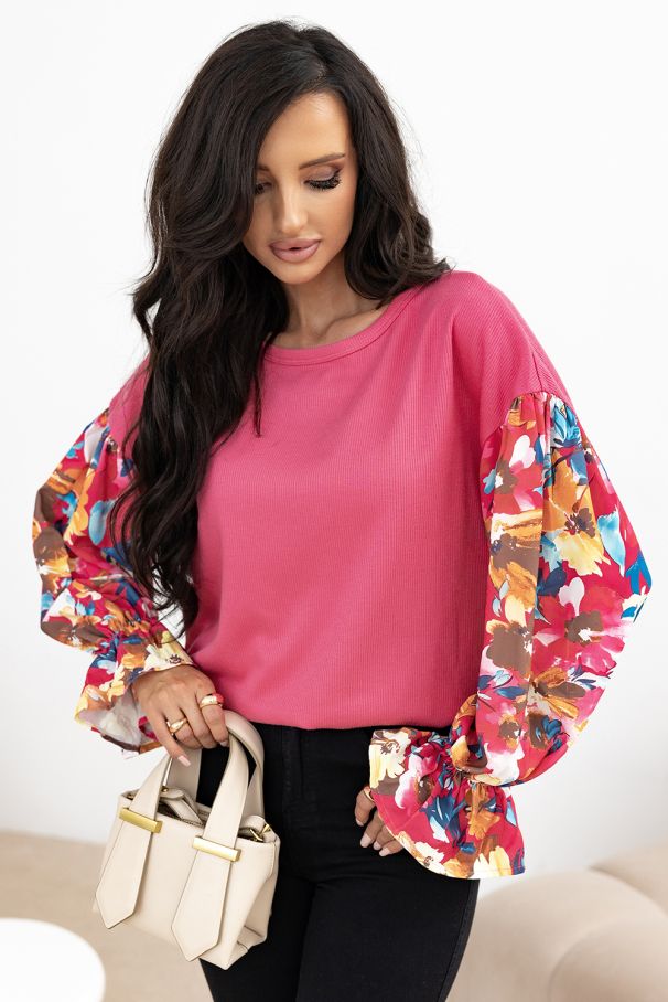 Sachet Pink Flower Patchwork Ruffled Sleeve Ribbed Knit Drop Shoulder Top