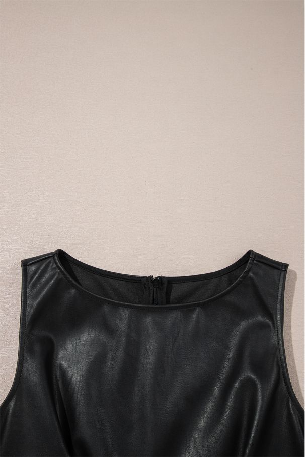 - The sleeveless cut and sleek silhouette create a confident, feminine look, while the soft faux leather feels luxurious and comfortable.