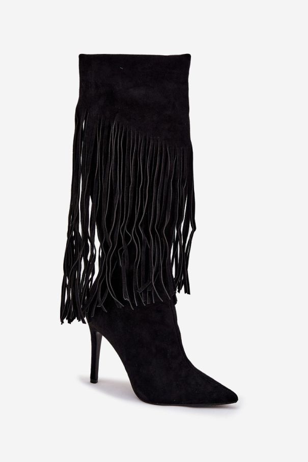 - Elegant women’s boots made of soft faux suede in a classic black color.
