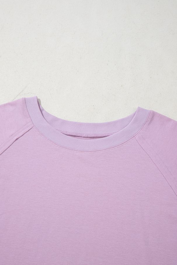 Home Clothing Women’s Plus Size Lavender Top with Floral Patchwork Sleeves