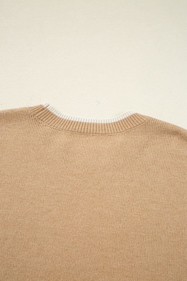 Women’s Beige Sweater with Leopard Print Bows and Contrast Cuffs