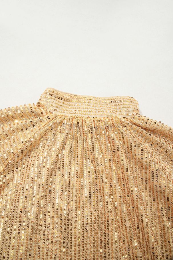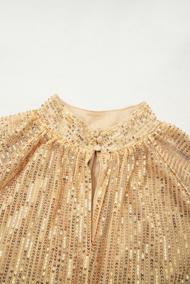 - Shine in this elegant gold blouse covered in delicate sequins for a luxurious finish.