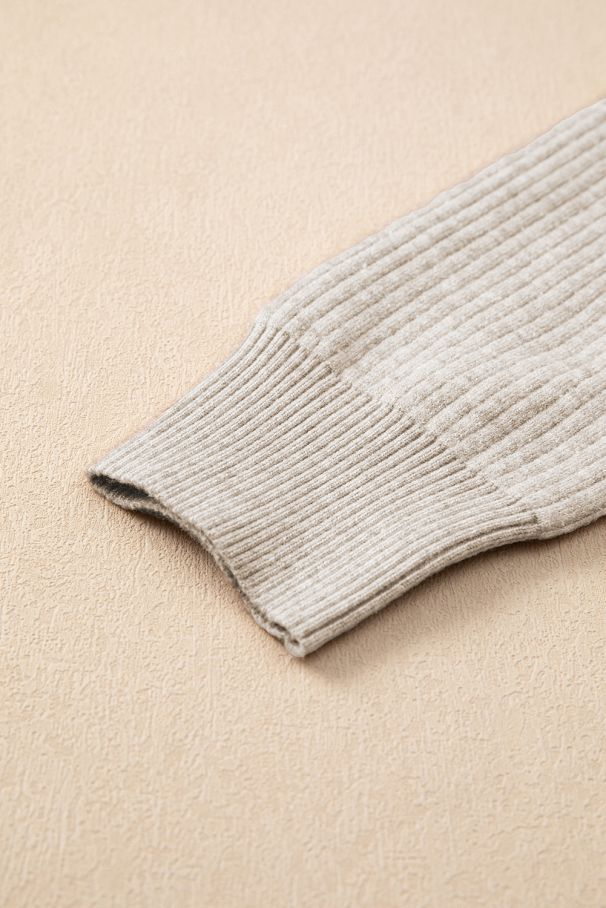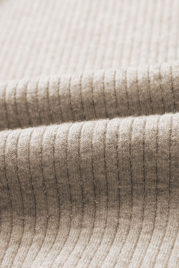 - Stay cozy and chic with this beige ribbed knit sweater featuring a soft thermal lining for extra warmth.
