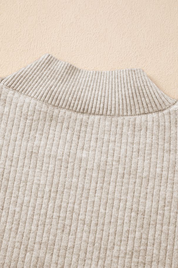 Women’s Beige Thermal Lined Ribbed Sweater with Mock Neck