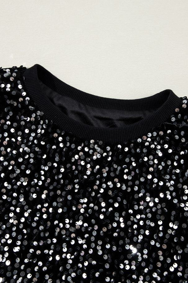 Women's Black Sequin Blouse with Modern Crop Fit