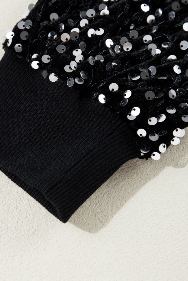 - This black sequined blouse adds effortless glamour to your look.