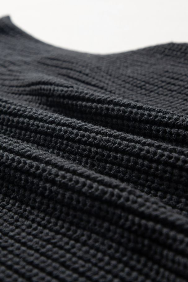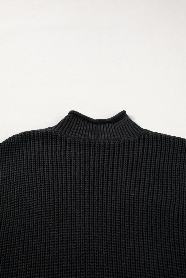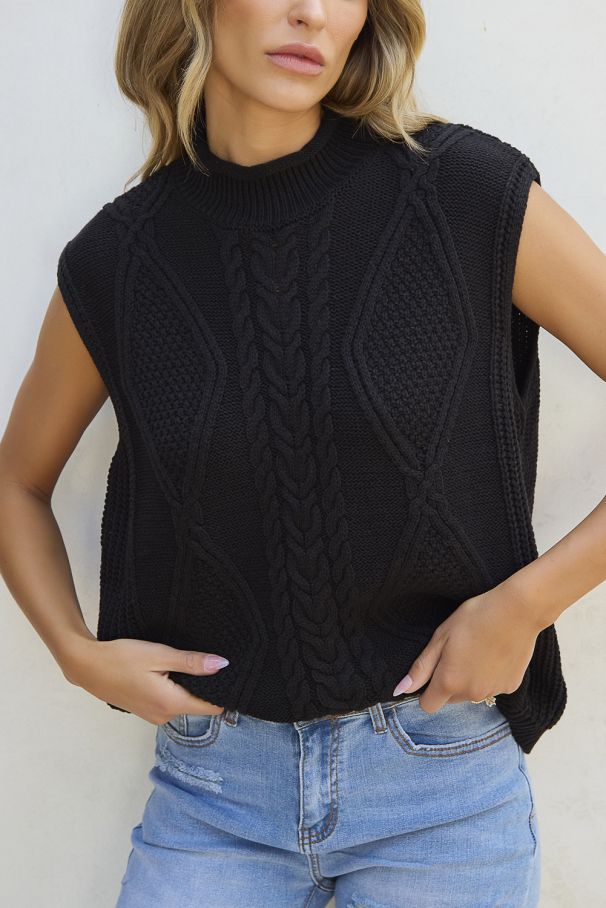 Black Solid Color Cable Knit High Neck Sweater Vest