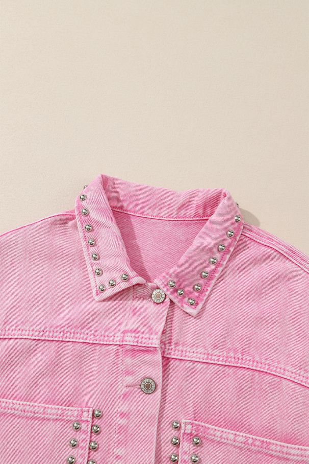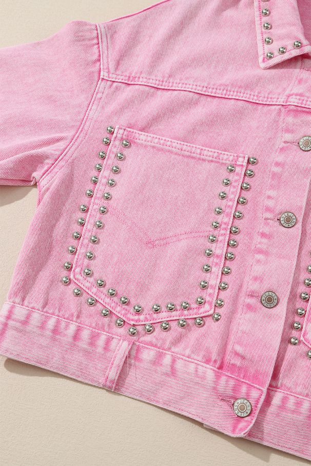 - Стилно розово дънково яке с джобове и капси.