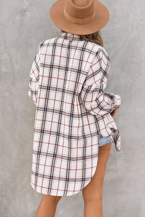 Дамска дълга карирана риза с дълъг ръкав и свободна кройка