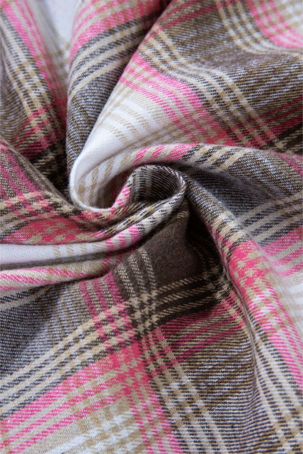 - Дълга риза с класическо каре в розово, кафяво и бяло.