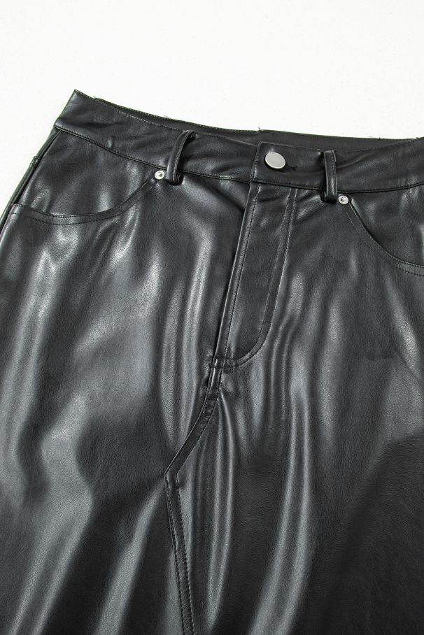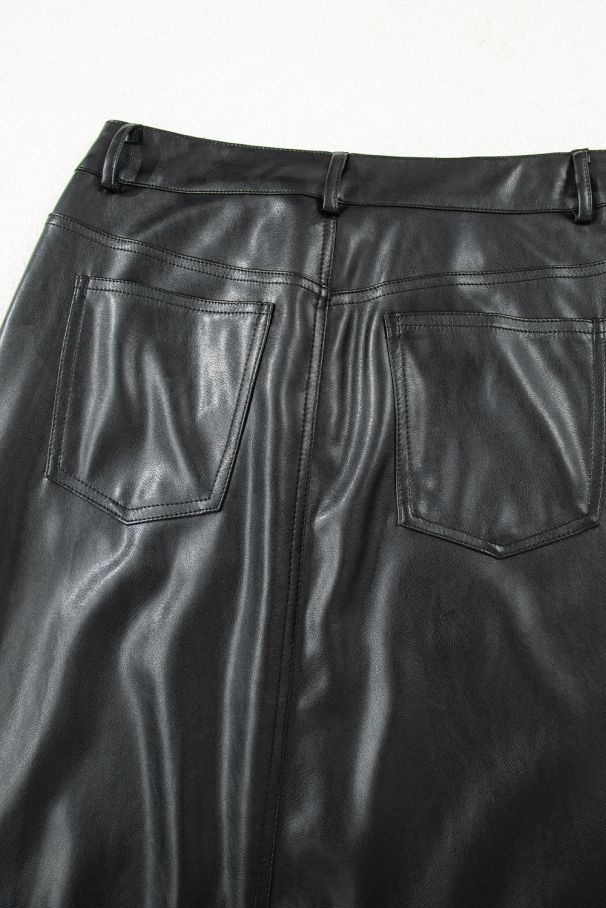 Дамска дълга черна пола от еко кожа с цепка отстрани