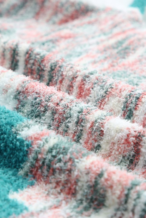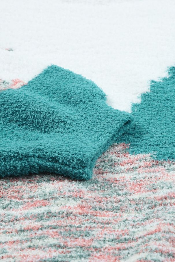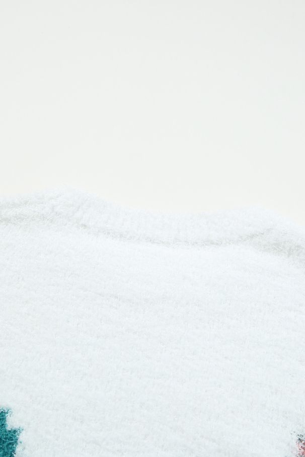 Дамски плюшен пуловер с цветен геометричен десен