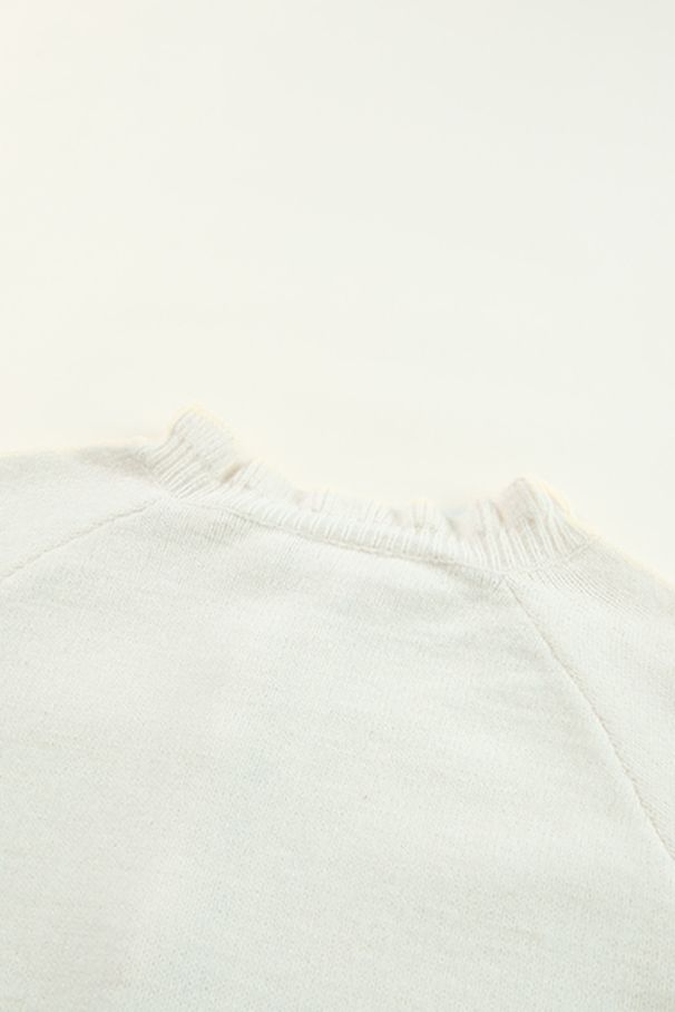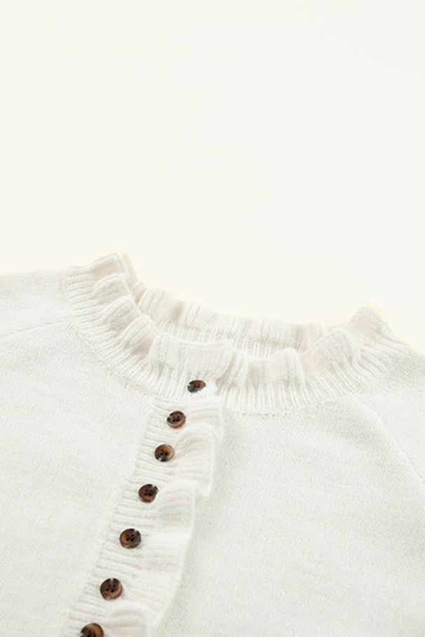- Елегантен и женствен бежов пуловер с декоративни копчета отпред и нежна яка с къдрички.