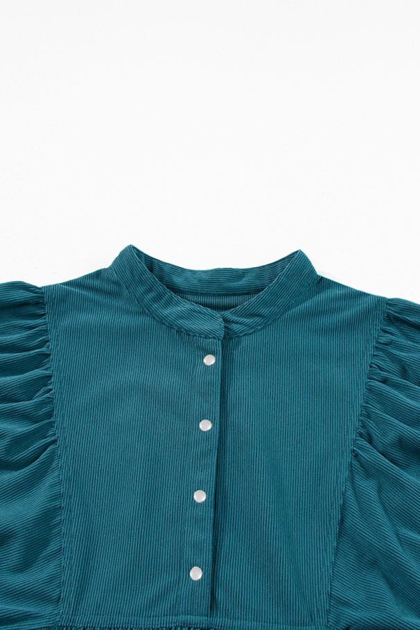 - Меката кадифена материя придава елегантен блясък и луксозно усещане, а свободната кройка с буфан ръкави и декоративни копчета отпред осигурява изискан бохо стил.