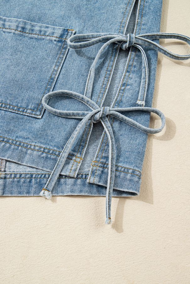 Дамско синьо дънково яке с големи джобове и странични връзки, boyfriend стил
