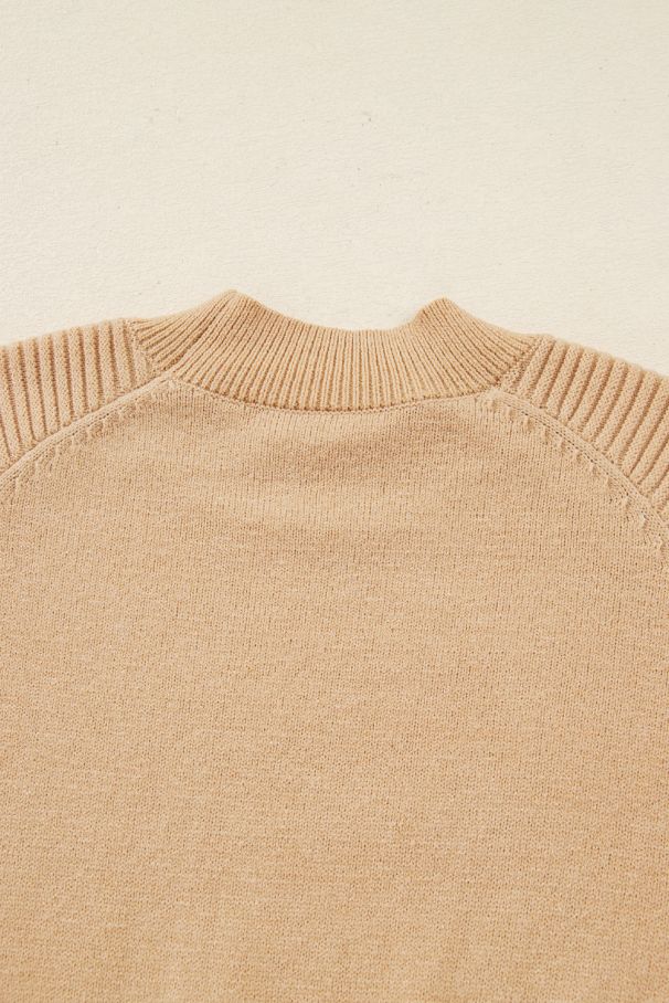 - Пуловерът е с висока яка и леко обемни ръкави, а полата е с удобна рипсена плетка, която приляга красиво към тялото, без да стяга.