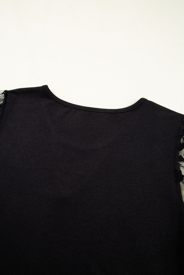 Black Flora Lace Patchwork Crew Neck T Shirt