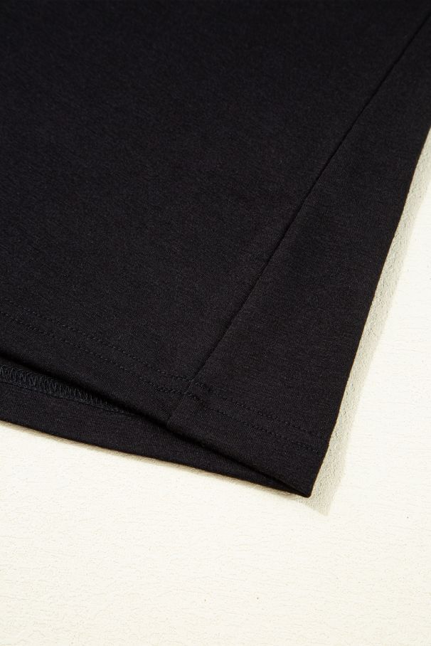 - Black t shirt with mesh puff sleeve is flattering and elegant.