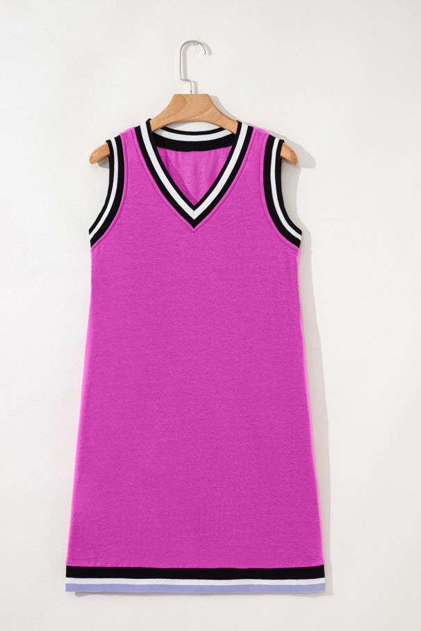 • Моделът е без ръкави, с V-образно деколте и контрастен кант, който придава свеж и модерен акцент.
